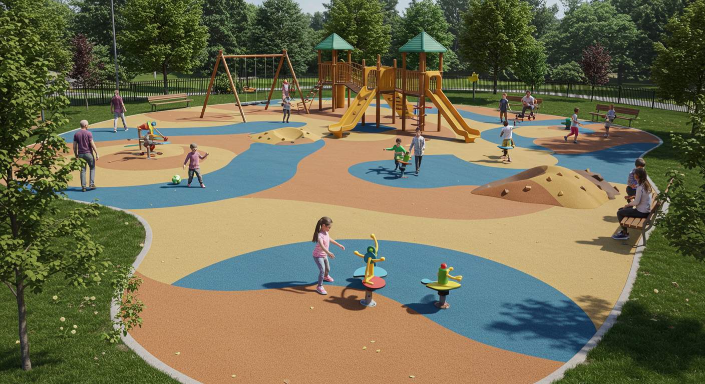 Выбор материалов зависит от назначения площадки, интенсивности использования и климатических условий. Современные смеси обеспечивают долгий срок службы и минимальный уход, сохраняя безопасные свойства покрытия на протяжении многих лет.