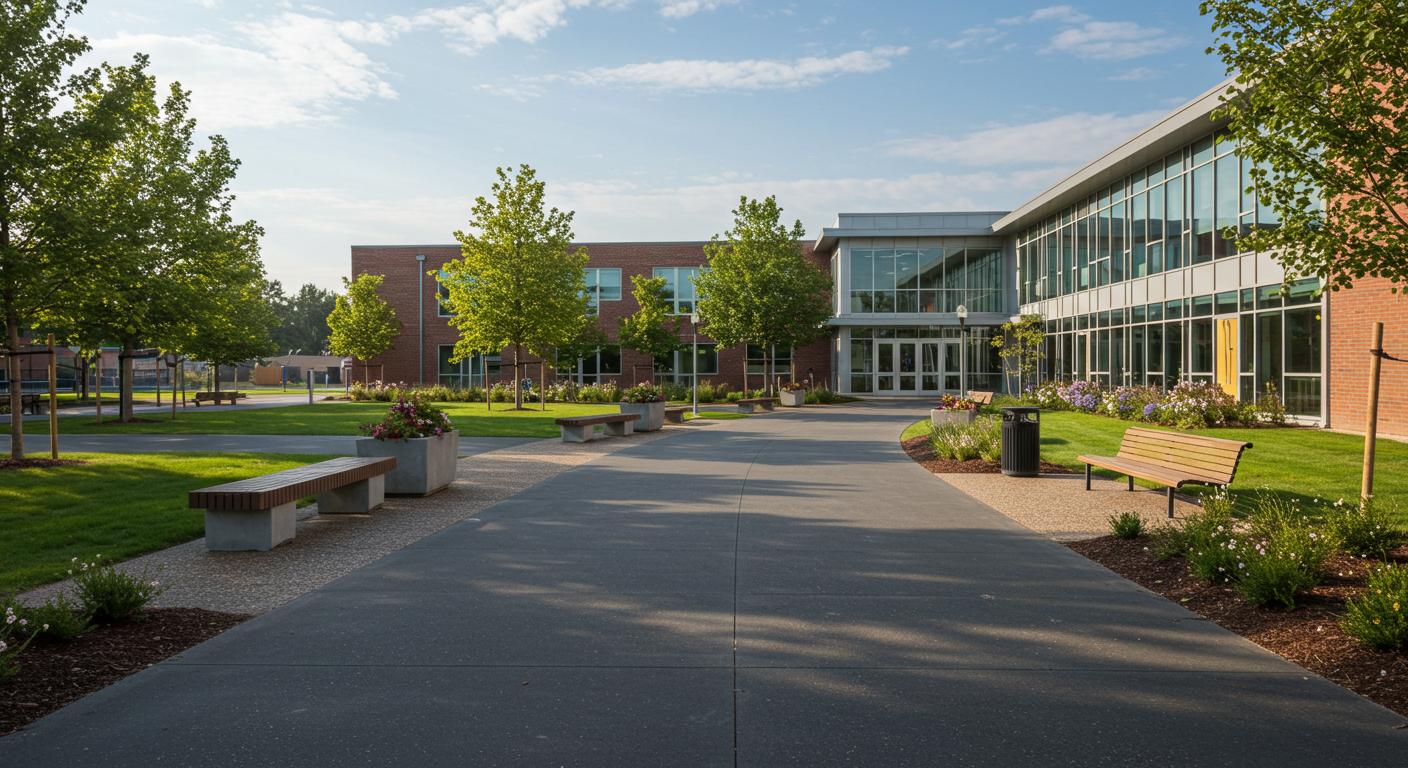 Качественно выполненное асфальтирование площадок вокруг учебных заведений дает множество преимуществ: