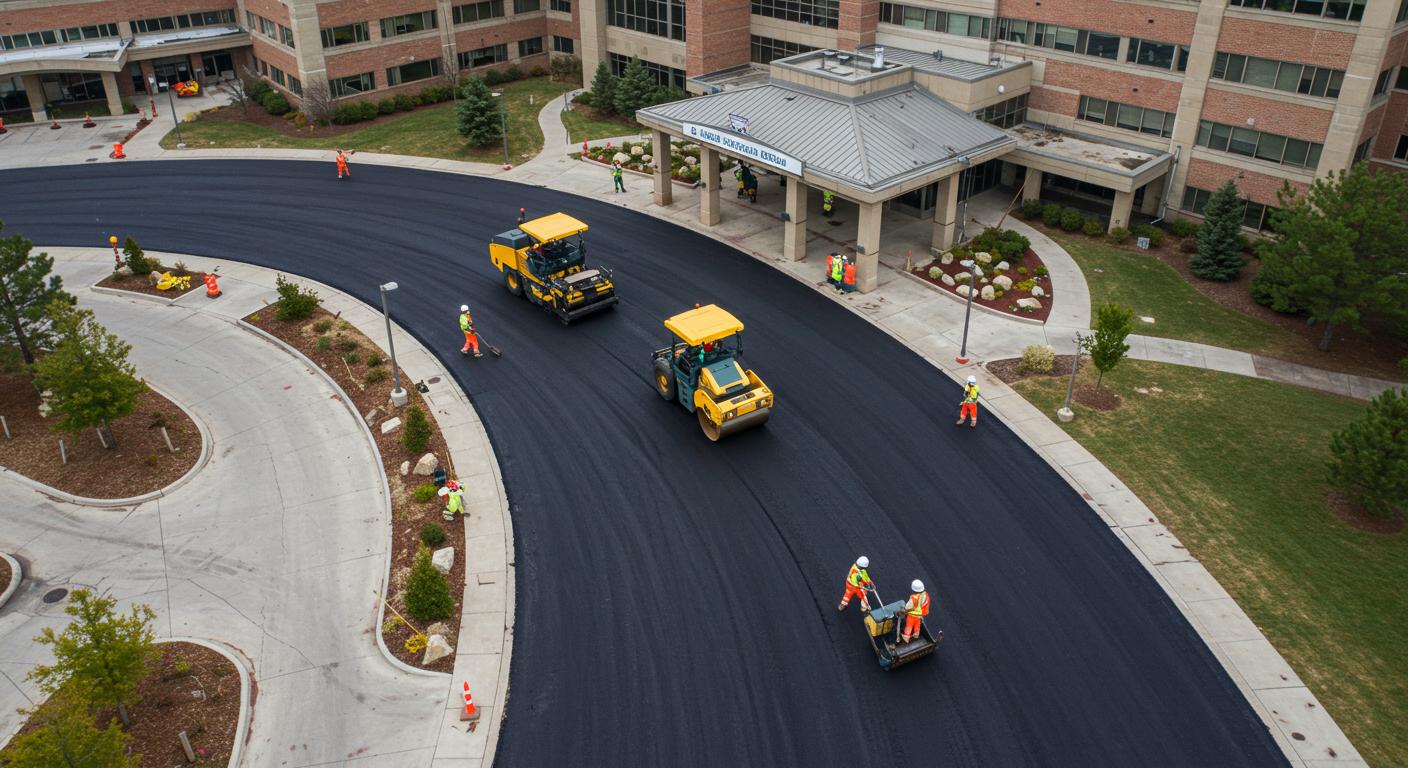 Качественно уложенный асфальт перед больницей обеспечивает безопасность и удобство движения