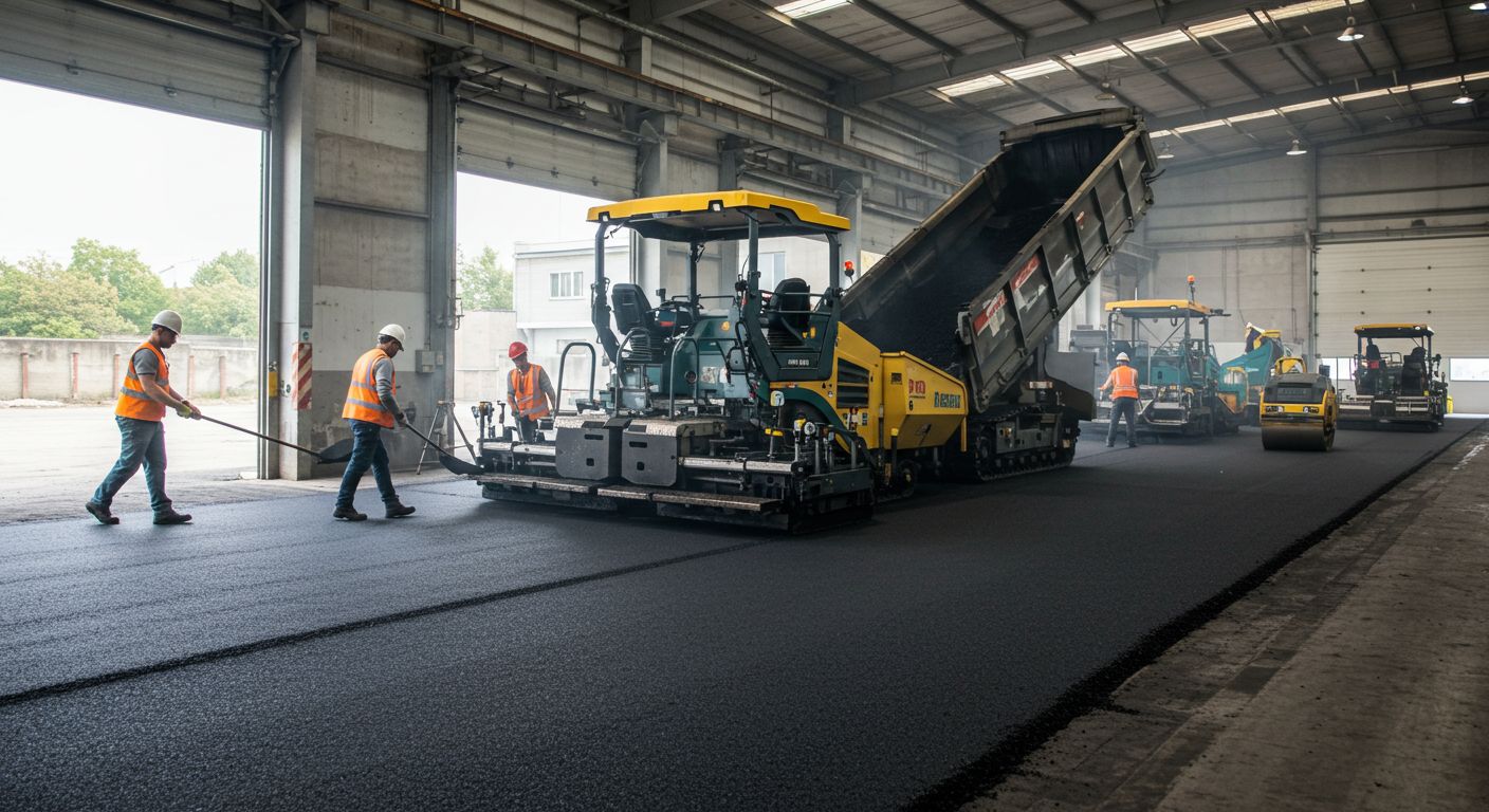 Асфальтирование заводской территории обеспечивает долговечность и безопасность движения транспорта