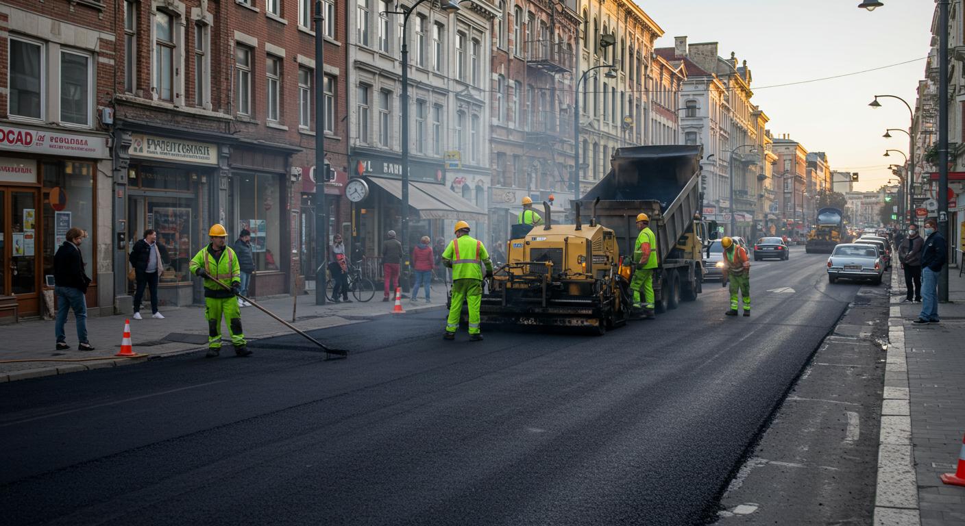 Процесс асфальтирования внутриквартальных дорог начинается с тщательной подготовки участка. На первом этапе производится уборка мусора, удаление старого покрытия и выравнивание грунта. Далее осуществляется разметка, определяются границы проездов, тротуаров и парковочных зон. На подготовленное основание укладывают слой щебня и песка, создавая прочную и устойчивую платформу. После формирования основания выполняется укладка базового слоя асфальта, который распределяет нагрузку и служит опорой для верхнего слоя. Финальный этап включает укладку финишного асфальтобетона с последующим уплотнением виброкатком для достижения ровной, прочной и долговечной поверхности.